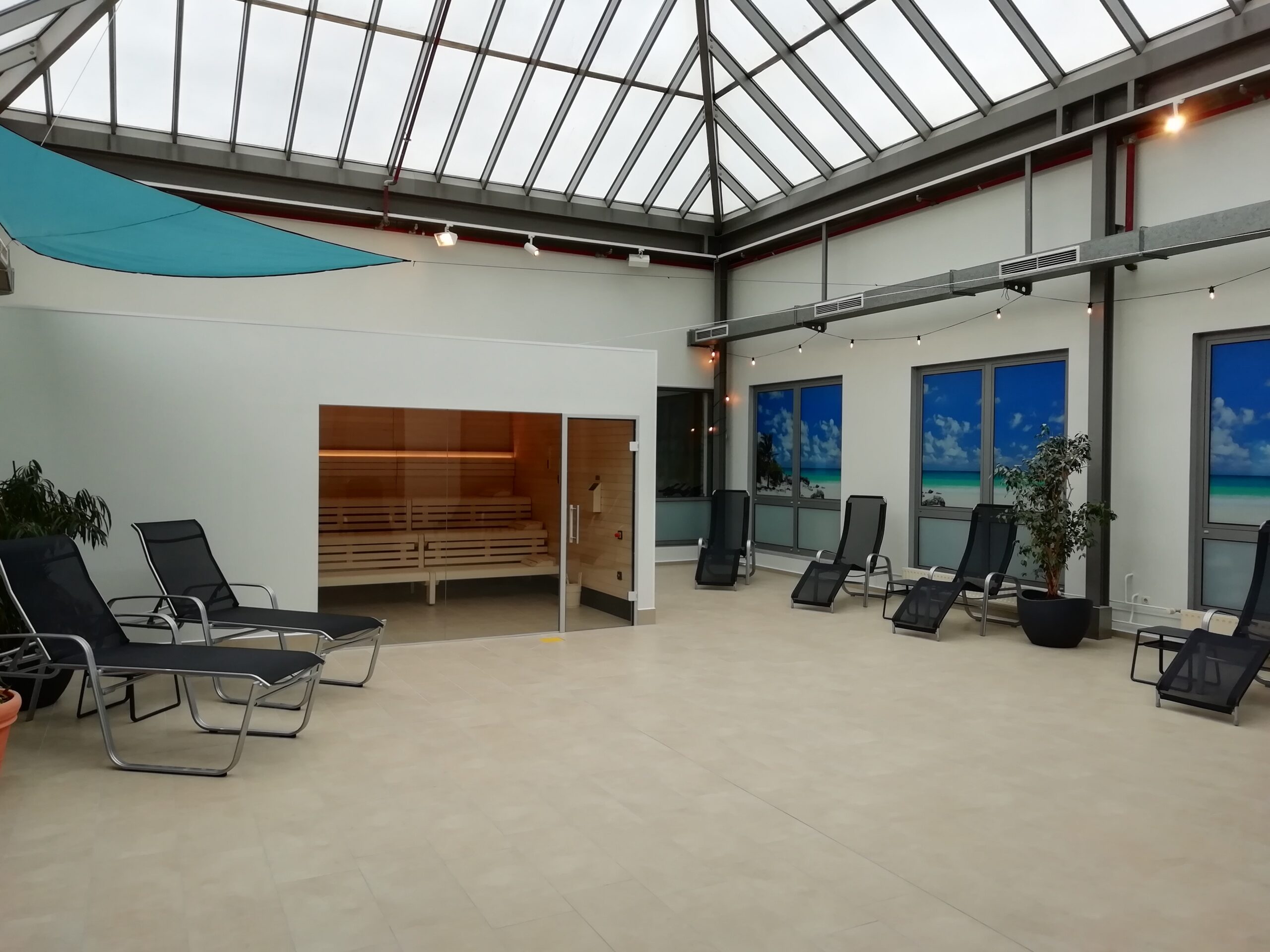 Unsere großzügige Sauna mit einladendem Ruhebereich lädt dazu ein, neue Energie zu tanken und die Regeneration zu fördern.